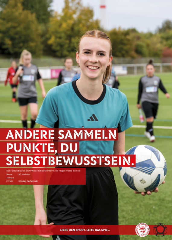 Du liebst Fußball und willst mehr Verantwortung übernehmen? Dann werde Schiedsrichterin oder Schiedsrichter bei der SG Harheim! Wir haben schon viele junge Schiris – aber wir für freuen uns über ein großes Team! Ob auf dem Platz, im Team oder für deine persönliche Entwicklung: Als Schiri wächst du über dich hinaus. 💬 Fairness fördern. 💪 Entscheidungen treffen. 🎯 Perspektiven gewinnen.